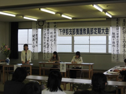 専門部の定期大会の最後として、養教部の定期大会が23日の17:15~教育会館参考館で行われました。執行委員長、県養教部長、前部長のあいさつの後、今年度の役員紹介や、今年度の部長あいさつがありました。